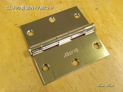 来週、お客様のトイレドア交換の時に取り付ける予定のドアヒンジです。一般的に室内用のドアヒンジは、玄関ドア等の外部ドア用よりも小ぶりな大きさのものを取り付ける為、取付け穴の数も各蝶番に3つずつが基本です。大きさは高さが89mm、ヒンジを広げた状態の幅も89mmで正方形となる形状をしています。このドアヒンジはエムテック(Emtek)というドアノブ(ドアレバー)を作っているメーカーが製造しているものなんですが、角が全て四角の形状をしています。室内用のドアヒンジは、角が丸くなったものが多く、四角のものはあまり見掛けないデザインだと思います。今回は既存のドアに取り付けられているヒンジが特殊であった為、このような形状のドアヒンジを取り寄せました。ドアやサッシといった輸入資材の交換を行う場合、形や大きさが異なるものを取り付けると納まりがよくないことがありますので、極力オリジナルに近いものを取り付けるようにしています。また、ドアの交換が完了した際には、記事に書かせて頂きたいと思います。輸入住宅の新築やメンテナンス、コンサルやコーディネートをして欲しい、家全般のチェックやアドバイスを受けたいので、現地調査を希望するという方はお問い合わせ下さい。全国どこでもご相談を受け付けます。尚、相談や問い合わせの前には、日々更新する記事をいくつかご覧の上適否をご判断願います。また、これらの記事が、多くの皆さんのお役に立てて頂ければ幸いです。