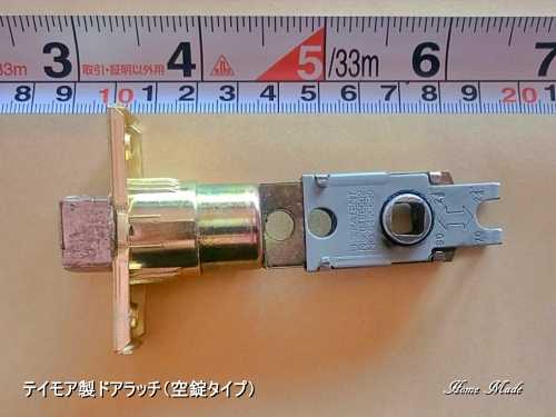 こちらは、長野県のお客様から交換品の調達をご依頼頂いたテイモア(Taymor)社製の古いドアラッチです。部品の後ろの方に大きめの四角い穴が明いていますが、ここにドアノブの心棒を入れて回すと鍵爪が出入りするという仕組みです。この四角い穴の位置は前後に動かすことが出来て、戸先から穴までの距離を60mmと70mmに設定出来ます。(写真は、70mmの状態です)私たちがよく使うクイックセット(Kwikset)のものは、この穴の形状が特殊で他のドアノブ・メーカーのものには使えませんが、テイモアのものは比較的汎用性が高く、他社の一部ドアノブでも使えます。ただ、似たような穴が明いたものでも、古いワイザー(Weiser)のドアノブで使われるドアラッチの穴は、少し小さめでこのラッチは使えないと思います。輸入のドアノブ(ドアレバー)に使われているラッチは、メーカーによって仕様やサイズが異なりますから、注意しないと調達しても使えないなんてことになるかも知れませんよ。あと、ドアラッチには、空錠タイプとキーで鍵が出来るドアノブ用の2種類が存在しますから、その点も注意が必要です。こういった話を聞いてもよく分からないというお客様は、私共のような専門家に相談して、適切な交換用ドアラッチを手に入れるようにして下さいね。輸入住宅の新築やメンテナンス、コンサルやコーディネートをして欲しい、家全般のチェックやアドバイスを受けたいので、現地調査を希望するという方はお問い合わせ下さい。全国どこでもご相談を受け付けます。尚、相談や問い合わせの前には、日々更新する記事をいくつかご覧の上適否をご判断願います。また、これらの記事が、多くの皆さんのお役に立てて頂ければ幸いです。