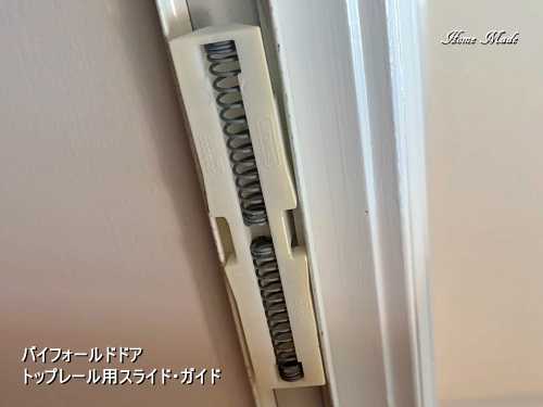 京都のお客様から収納ドアとして使われるバイフォールドドア(折れ戸)の部品が欲しいというご相談を頂きました。写真がその部品ですが、ドアの上枠レールの中に装着されていて、バネとバネとの中央の間にドアのピボット(棒状の金属部品)を入れてレールの中を左右に動くスライド・ガイドという部品です。この部品があることで、折れ戸の開閉がスムースになり、尚且つドアがトップレールから外れないようにしてくれます。バイフォールドドアは、2枚折れ戸と4枚折れ戸の2種類ありますが、2枚折れ戸の場合はこの部品を1個、4枚折れ戸の場合は左右の折れ戸に1個ずつ使います。今回お客様からは1個のみ欲しいというご要望でしたので、2枚折れ戸の部品がなくなるか破損したか、4枚折れ戸の片側の部品がなくなるか不具合を起こしたかということだと思います。写真のものは、不具合のない正常なスライド・ガイドのようですが、スチール製のレールに少し歪みが見受けられます。レールが変形してしまうと、このスライド・ガイドが外れてきてしまったり、スライド・ガイドが途中で引っ掛かったりしてしまいますから、レールを交換するなり調整するなりといった作業が必要となります。また、よくあるのが、スライド・ガイドに内蔵されているバネが長年の使用で飛んでしまいなくなってしまうというトラブルです。このバネの力でドアがカッチリ閉まるという役目を果たしていますから、バネがなくなるとドアを閉めたつもりでもドアが自然と開いてきてしまうという不具合も発生します。建築資材はどんなものでも役割がありますので、小さな部品一つでもなくなれば快適な暮らしが送れなくなります。壊れたりなくなったりしたら、専門家に相談して早めに部品を調達すると共に、ドアの開閉がスムースになるような調整やドア自体の建て起こしを直してもらうことが重要です。輸入住宅の新築やメンテナンス、コンサルやコーディネートをして欲しい、家全般のチェックやアドバイスを受けたいので、現地調査を希望するという方はお問い合わせ下さい。全国どこでもご相談を受け付けます。尚、相談や問い合わせの前には、日々更新する記事をいくつかご覧の上適否をご判断願います。また、これらの記事が、多くの皆さんのお役に立てて頂ければ幸いです。