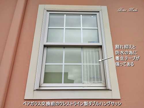 茨城県のお客様の輸入住宅にお邪魔して、輸入サッシのペアガラスを交換してきました。サッシは、クレストライン(Crestline)製の樹脂ダブルハングサッシ。ガラスの正確な寸法を確認する為に、以前採寸調査をさせて頂いたのですが、今回新しいペアガラスが出来上がりましたので、現場にお邪魔しました。こちらの写真が交換前のガラスが割れた写真ですが、下窓ガラスに養生テープが張り付けてあります。この養生テープは時間が経つと太陽光で劣化してしまい、テープを外す際に粘着剤がこびりついて酷く汚くなってしまいますから、あまり張って欲しくない材料ですが仕方ないですね。粘着テープを専用の剥離剤で剥がすという余分な作業も行いながら、ペアガラスを入れ替えたのが次の写真です。ペアガラスは少し高品質な遮熱型LOW-E断熱ガラスを採用しており、少しブルーがかった色をしていますが、格子のデザインやサイズもピッタリです。普通の業者さんだと上げ下げ窓の下窓ガラスの交換の仕事だと、下窓建具に挿入されているペアガラスを交換するだけですが、それだとガラスの質感や格子のデザインが上・下の建具で揃わなくなる恐れがあります。ですから、私たち ホームメイドでは、面倒を顧みず下窓だけでなく上窓のペアガラスも一緒に交換をしています。ですから、外からも室内側からも非常にきれいな外観に仕上げることが可能となります。ただ、ガラスを輸入の建具から外すのって、すごく大変なんですよ。それはガラスの周囲にガッチリと防水接着剤が付けられていますから、そう簡単には取れないようになっています。まあそれでも、専用の道具や経験がありますから、時間や手間を掛けてきれいに除去させて頂きました。ペアガラスを建具に入れた後は、防雨対策として外部のガラスの周囲などに防水処理を施して修理完了です。言葉にすると簡単そうですが、実は結構手の込んだ仕事をしています。輸入住宅の新築やメンテナンス、コンサルやコーディネートをして欲しい、家全般のチェックやアドバイスを受けたいので、現地調査を希望するという方はお問い合わせ下さい。全国どこでもご相談を受け付けます。尚、相談や問い合わせの前には、日々更新する記事をいくつかご覧の上適否をご判断願います。また、これらの記事が、多くの皆さんのお役に立てて頂ければ幸いです。