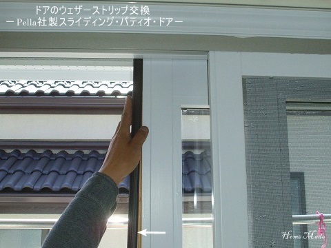 Pella社製スライディング・パティオ・ドア、いわゆる掃出しサッシですが、このドアに付いている黒いウェザーストリップが経年劣化で破れた為、交換して欲しいという依頼を受けた。国内ではこういうメンテナンス部品を在庫している処がないので、アメリカのメーカーに依頼して取り寄せることとなる。ウェザーストリップは、気密を保つ為のパッキン材なので、それ程緊急性はないと言えるが、鍵などの破損でロックが出来ないなんてトラブルの場合は防犯上の不安もあるから、多少の部品を国内にストックしておいて欲しいものです。何れにしても、ペラの本社から部品が到着したのは、3ヶ月後。アメリカの港湾ストなどの影響で余分に納期が掛かってしまった。この写真は、その新しいウェザーストリップを取付けしている様子だが、ドアが元通りに美しくなると気持ちがいいものです。メンテナンスにはお金や時間が掛かりますが、破損したままにしておくよりは、余程精神的にも前向きになる気がします。生活に支障がないからといって壊れたままにしておくと、運もどこかに行ってしまうかも知れませんよ(笑)私たちの考えや建築に共感され、施工を希望される方は、ご相談下さい。