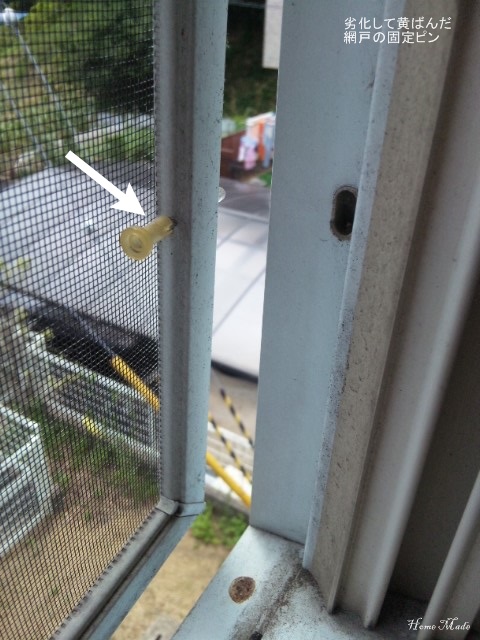 輸入サッシ、マーヴィン(Marvin)は輸入住宅で使われている代表的な窓のひとつです。20年近く前の輸入住宅ブームの時から施工されていますので国内でも多くのユーザーがいると思います。今回、愛知県西尾市と奈良県五條市の方から、網戸の固定用部品「スクリーン・ピン」を分けてもらえないかというお問い合わせを頂きました。奈良の方は、新築した時の工務店が倒産してしまい、お願いするところがないという切実な状況です。写真は、その方からお送り頂いたものですが、透明だったプラスチックの部品が黄ばんでしまい、その根元あたりは割れが見受けられる感じです。こうなると、内部に仕込まれた小さなバネも折れてしまったりして、このスクリーン・ピンは、遠からず網戸から脱落して固定の用をなさなくなる恐れが生ずるでしょう。輸入サッシの部材の多くは、樹脂や金属で作られていますから、その耐用年数は10年程度。部材を都度交換することで、適切な機能を果たしてくれますが、それを供給出来る工務店やビルダーがいないのも現実です。そんな方には私たち ホームメイドが出来る限り対応しますが、まだ新築して頂いた建築屋さんがいらっしゃる場合は、長くお付き合いが出来るように、いつもコミュニケーションを取って頂くことが重要です。1個100円程度の部材でも、それがなければ数千万円のおうちがどんどん悪くなって、価値がなくなってしまうのですから・・・。