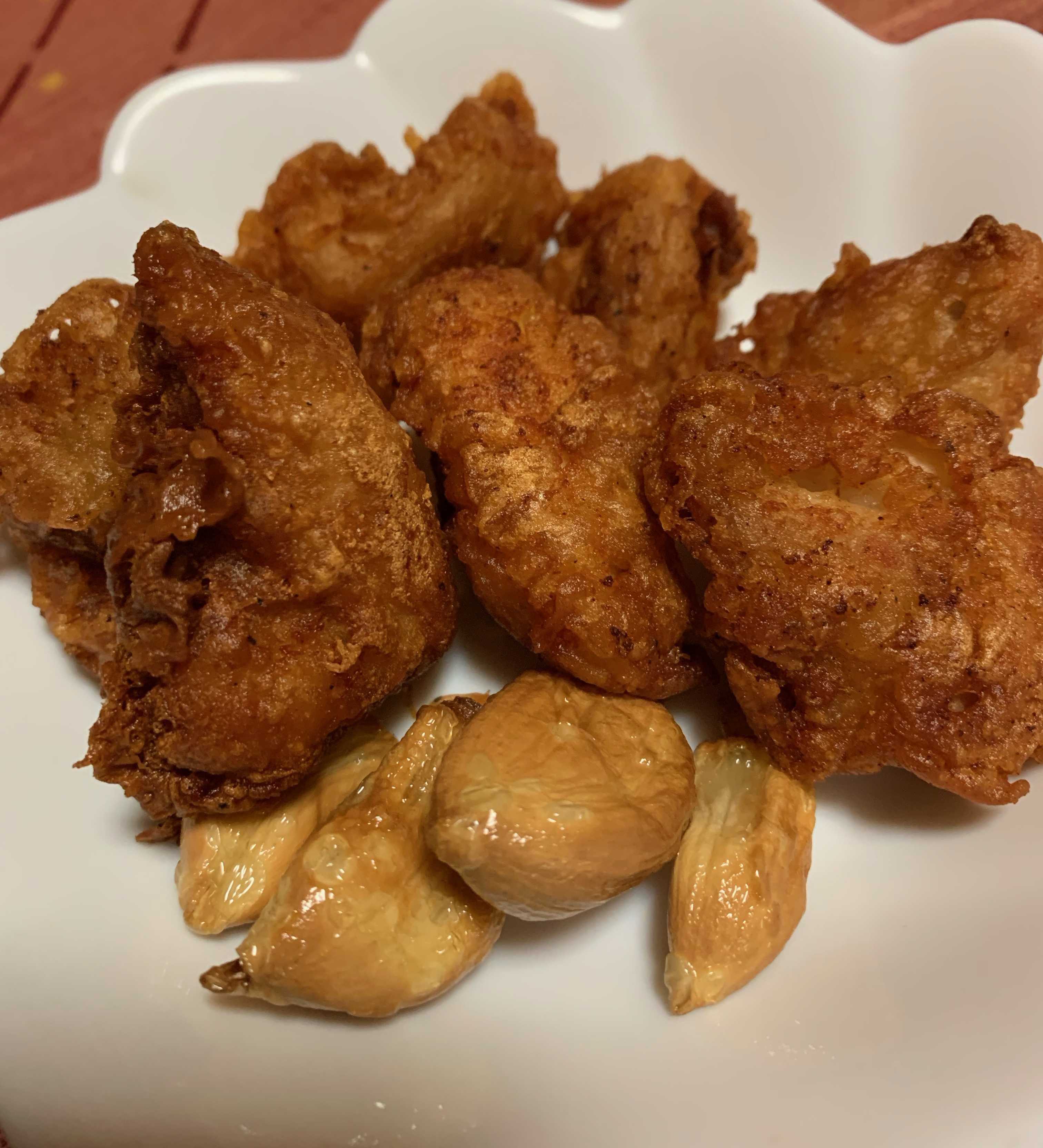 先日息子が夜食に唐揚げ作って「はい!!おかんの分」とくれましたやべぇ・・・♪また画像でかいやつ~~息子君が好きなのは(自分で作る場合)小ぶりで表面「カリッと」が好きです手前はニンニクっすこれがさ・・・うまいんだわ!!どう唐揚げ食べたくなったでしょ??こんな時間に爆弾投下してみた