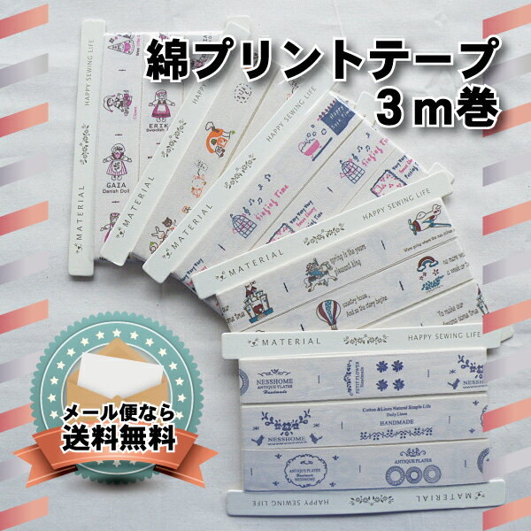 期間限定24時間セールの50%OFF 送料込199円!!! コットンプリントテープ約25mm巾×3m巻【期間限定24時間セールの50%OFF】【メール便なら送料無料】