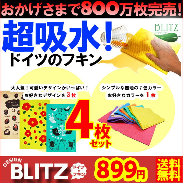 超吸水ドイツのフキン☆衝撃の48時間限定特価☆4枚SET899円送料無料! 899円送料無料!!! 【10月10日発送】メール便限定送料無料【899円ポッキリ】【今ならポイント10倍】「ドイツのフキンブリッツ☆デザイン入りブリッツ3枚+無地1枚☆4枚セット☆BLITZ」【10P25Sep13】【福袋・ふきん・布巾・クロス・キッチンワイプ・スポンジワイプ・ドイツ製フキン・ぽっきり】