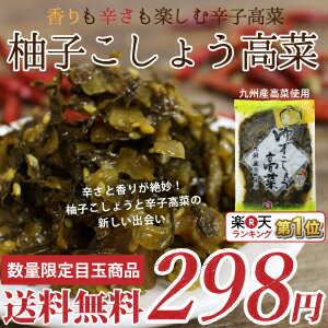 0:59まで!! 送料込298円!! 辛子高菜の革命食!【送料無料298円】辛さも薫りも楽しむ『ゆずこしょう高菜』乳酸発酵で仕上げた九州産の高菜に、唐辛子とさわやかな香りと辛さの柚子こしょうの、辛さと薫りが立ち上る新感覚の辛子高菜です!九州の新グルメをお楽しみください。10P30May15