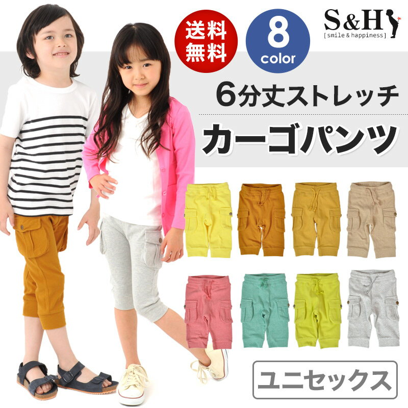 ランキング入り!! 送料込500円!!! 【再値下げ!サマーセール特別価格!1,390円⇒500円】【旧モデルにつき限定価格】送料無料★6分丈ストレッチ・カーゴパンツ[8色展開] 子供服 男の子 女の子 キッズ ジュニア ボトムス ハーフパンツ