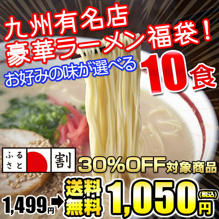 ランキング入り♪ とんこつラーメン10食セット ふるさと割りクーポンで送料込1050円!! ふるさと割 選べる九州有名店豪華とんこつラーメン福袋10食セット【送料無料1499円】【福岡_物産展】<br>博多とんこつ、熊本ラーメンなど10種類の九州厳選らーめんをご用意!<br>〇選べる九州有名店豪華★豚骨ラーメン福袋10食