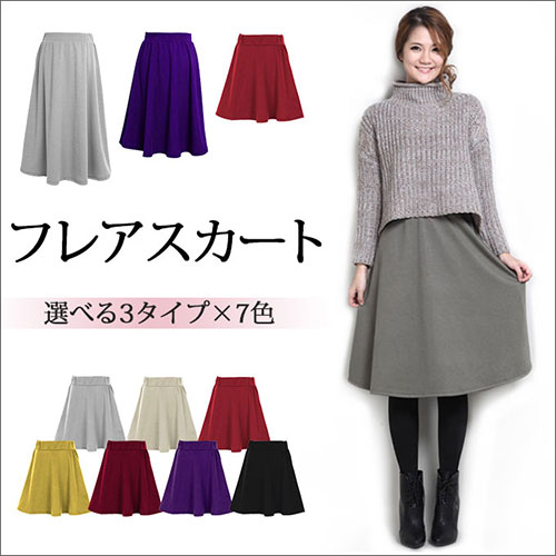 送料込500円!! 【ゆうメール便送料無料】【選べる3タイプ×7色】ミモレ丈・ひざ丈・ミニ丈裏起毛スカート/フレアスカート/レディース フレアスカート サーキュラースカート ミモレ丈 ひざ丈 膝丈 裏起毛 無地