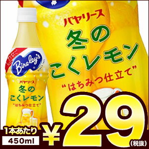 アサヒ バヤリース 冬のこくレモン 450mlPET×24本 751円!!! 【2~3営業日以内に出荷】【在庫処分】<br>アサヒ バヤリース 冬のこくレモン 450mlPET×24本<br>[賞味期限:2016年6月2日]<br>同一商品のみ2ケースまで1配送でお届けします。[税別]