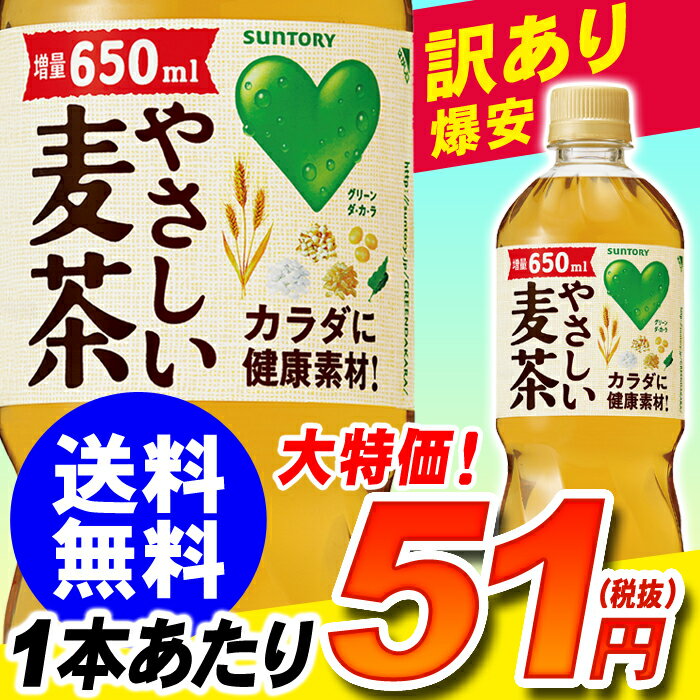 GREEN DA・KA・RA やさしい麦茶 サントリー 650ml×24本 1321円送料無料 <br>GREEN DA・KA・RA やさしい麦茶 サントリー 650ml×24本<br>【1ケースから送料無料】<br>グリーンダカラ やさしい麦茶 650ml ペットボトル<br>お茶 ムギチャ ドリンク 訳あり 大特価【RCP】