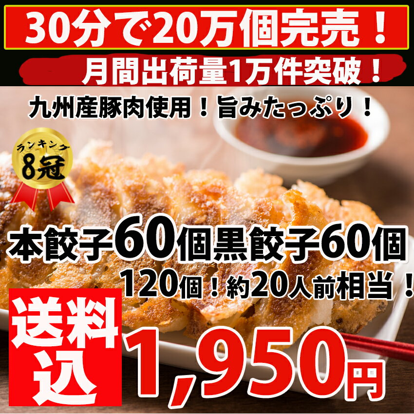 黒餃子60個本餃子60個!合計120個 1950円送料無料!! 【2013年餃子部門グルメ大賞受賞!】餃子 送料無料 【5000万個完売】黒餃子60個本餃子60個!合計120個!約20人前!メガ盛り/餃子/生餃子