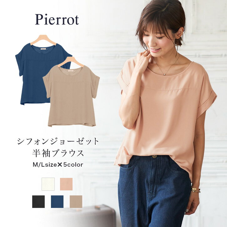18:59まで!シフォンジョーゼット半袖ブラウス 1090円送料無料!!【楽天スーパーSALE*6/18 18:00~18:59まで】【送料無料】【GINGER掲載】★★★シフォンジョーゼット半袖ブラウス☆ ジョーゼット シフォン 半袖 ブラウス プルオーバー トップス M L ピエロ pierrot ぴえろ piero【返品不可】(※メール便配送のため代引は不可) 楽外のお得など・・・コチラでUP中!!