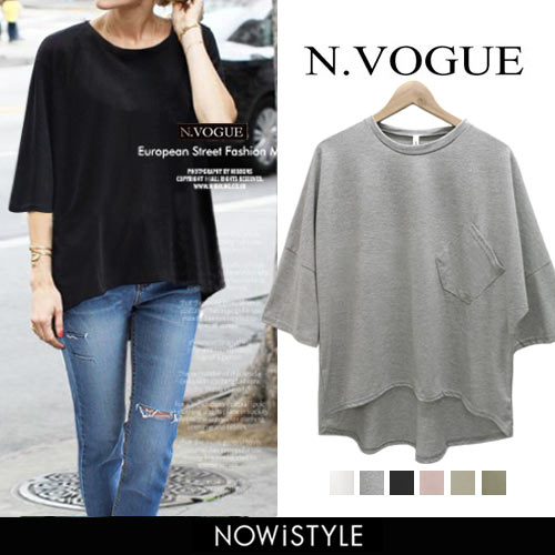 14:59まで!!激安!! 540円送料無料♪♪ ビッグポケットTシャツ【4/7up_r】【メール便送料無料】韓国 韓国ファッション Vネック七分袖Tシャツ ゆるT ゆったり 七分 七分袖 ボックス ドルマン ポケット 二の腕カバー 着やせレディース ファッション【3】
