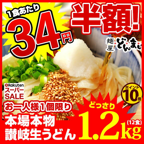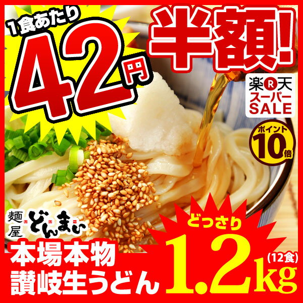 22時30分~販売!! 399円送料無料♪♪【創業記念祭】 讃岐うどん 1食あたり34円 本場讃岐うどん製麺工場直送! 讃岐うどん どかんっと1.2kg!! (麺300g×4袋 (12食)) 訳ありではありません!! うどん 送料無料 目玉 ★お1人様1個限定