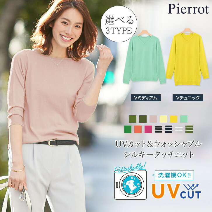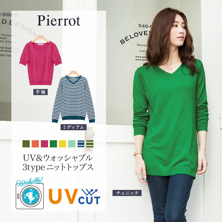 880円送料無料♪ 【アウトレットセール】【送料無料】\カラー限定 超特価!!/★★★ UVカット&ウォッシャブル 選べる3type~お家で洗えるニットトップス UV ニット 春 夏 Pierrot ピエロ 【返品不可】(※メール便配送のため代引は不可)