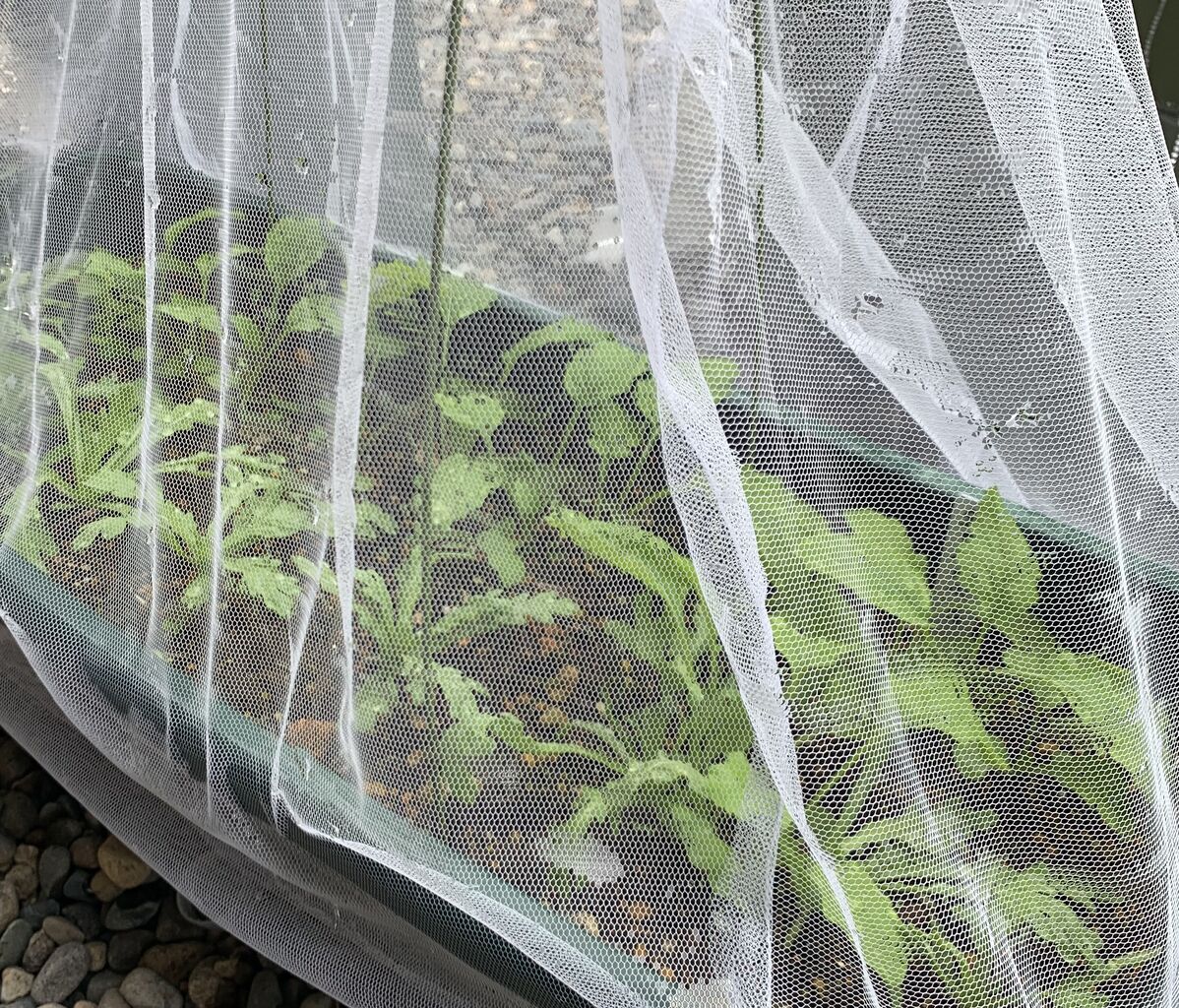 虫よけの網をかぶせて育てています。