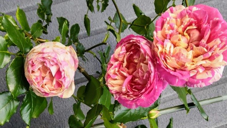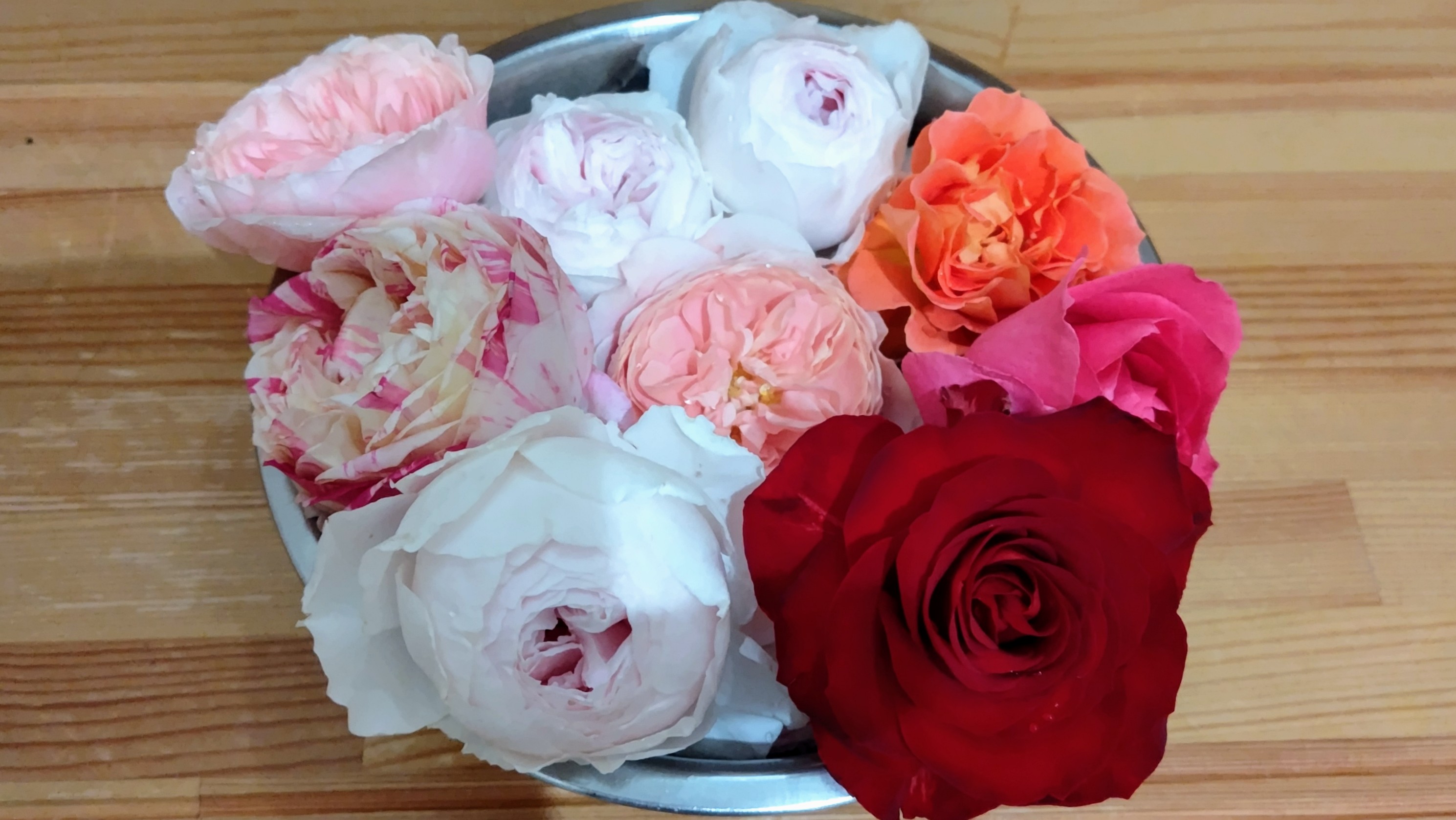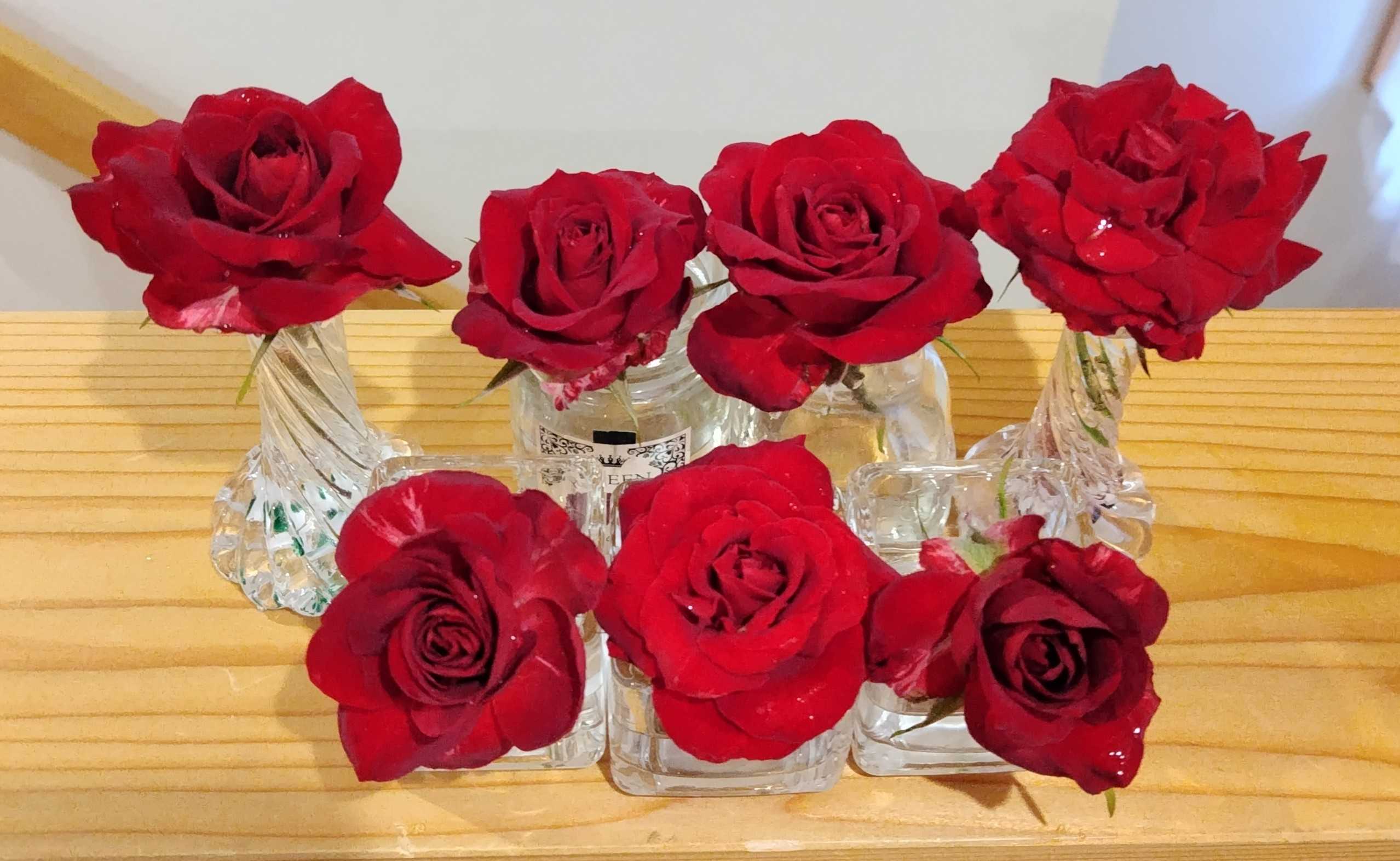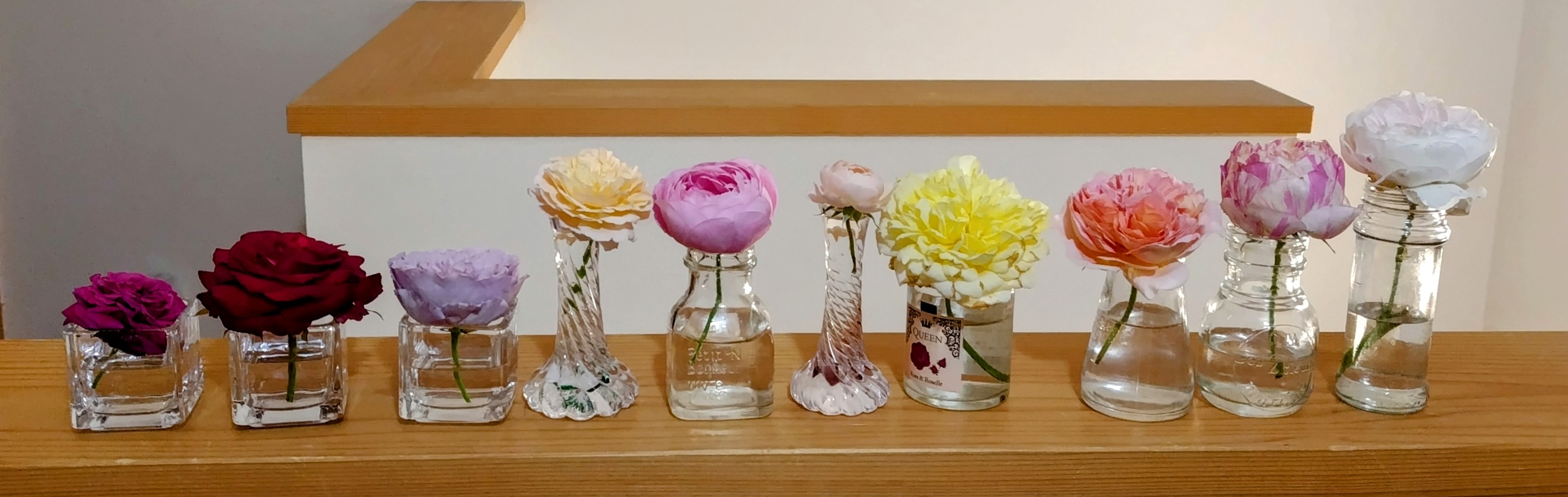 今日カットした薔薇最近 急に暑くなってきました花がすぐにシワシワになってしまいますカットして一輪挿しに並べてみましたきれ~いかわいい〜色も形も並べてみるとこんなに違う❣ ❣ ❣左 エクレア右 ニコロパガニーニ↓↓↓< エクレア >今年 少し花が小さかった< ニコロパガニーニ >毎年優秀 手間いらずの薔薇❣ ❣ ❣左 ラピスラズリ中央 クラウンプリンセスマルガリータ右 ラレーヌビクトリア↓↓↓< ラピスラズリ >色も形も香りも大好きな紫の薔薇何とか3輪くらい咲いてくれましたが樹勢弱々もう一度 買い直そうか考え中< クラウンプリンセスマルガリータ >今年 再度お迎えしたER前回は 台風でやられました< ラレーヌビクトリア >大好きなオールドダマスク〜ブルーの良い香り 花付き良しトゲも少なく つるも扱いやすい❣ ❣ ❣左 デスデモーナ中央 ピルグリム右 アブラハムダービー↓↓↓< デスデモーナ >このコは挿し木から咲いた本来のデスデモーナの1/5くらいしかないでも 香りはとても強いもともと香りの強い薔薇ですがこんなに小さくても香るなんて凄い< ピルグリム >太陽のように明るいレモンイエローなのも気に入っている< アブラハムダービー >ピンク〜アプリコット香りもめちゃめちゃ好みもう少し花持ちが良いと嬉しいのですが…❣ ❣ ❣左 エドゥアールマネ右 クリスティアーナ↓↓↓< エドゥアールマネ >ものすごく優秀なデルバールの薔薇たくさん花が咲きます夏もよく返り咲く形も色もとても好き< クリスティアーナ >いつもだけど 今年は 爆咲き朝晩 花がら摘み