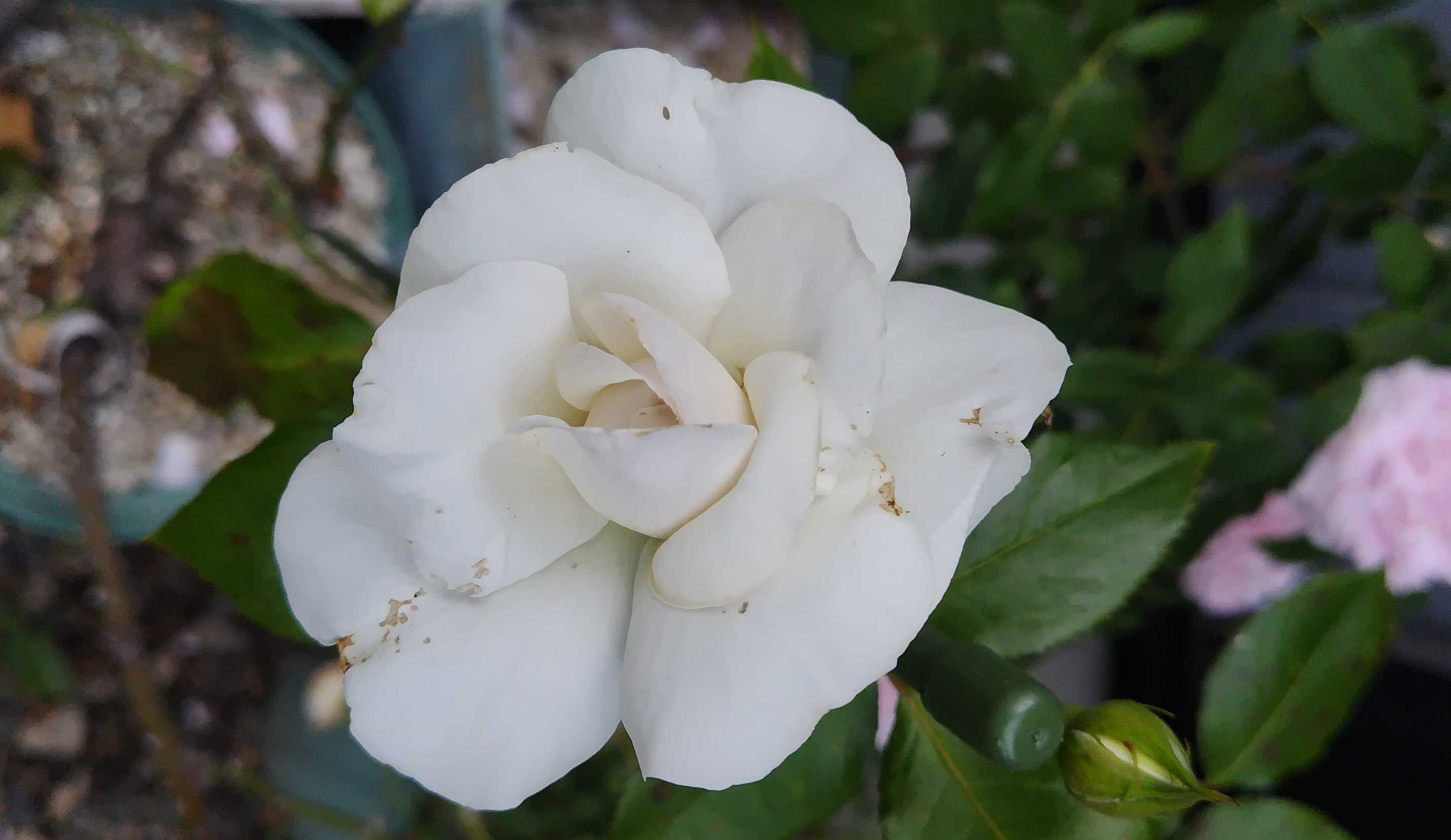 < スワンレイク >はっきり言って扱いにくい薔薇ですトゲは多いし 鋭角だし花は 一枝に一つくらいしか咲かないしでも 綺麗に咲いた時の美しさは格別どんどん株が小さくなっちゃって 今は あまり調子が良くないです今年で終わっちゃうかも…❣ ❣ ❣ 2025/05/16どことなく元気がありません本来はとても綺麗な薔薇なのですが…❣ ❣ ❣ 2025/05/17うーん やっぱり あんまり調子良くない…❣ ❣ ❣2025/05/19柔らかな白い剣弁咲き後ろに蕾が二つ付いてます今年はこれで終わりそうです毎年 夏に返り咲くけど今年は無理そうだ❣ ❣ ❣2025/05/22こちら側の蕾の薔薇も咲きました中央の色がクリームっぽいな❣ ❣ ❣2025/05/24本来は 中央が淡いピンクになるのですが今回 バフイエローになってます❣ ❣ ❣バラ苗【新苗】スワンレイク 国産苗《J-CL20》