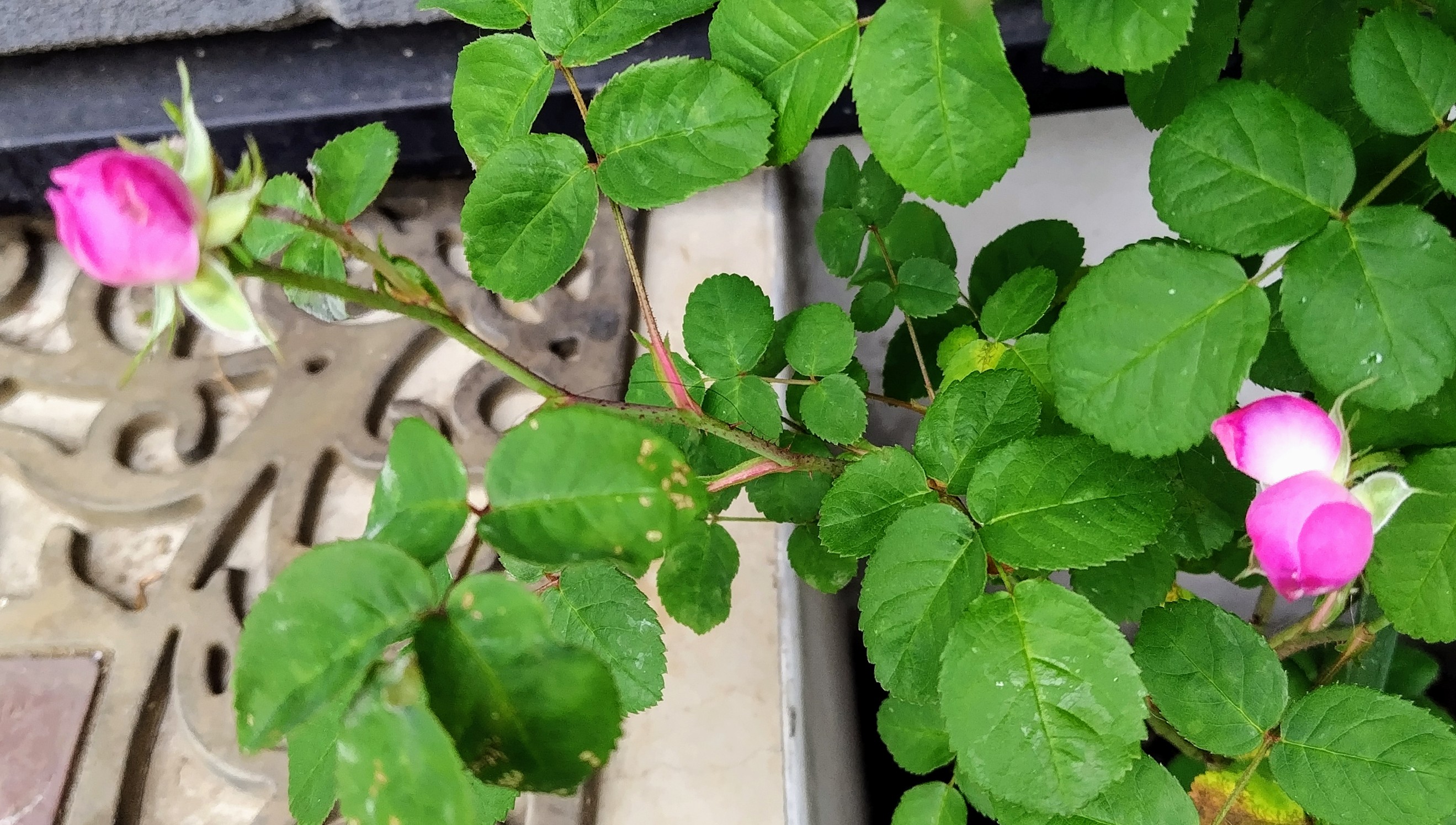 < ハンティントンピンクティー >4/22〜28ふと見ると ハンティントンピンクティーの蕾が開き始めてる不覚全くノーマークたおやかでアンティークベル・エポックを彷彿とさせる薔薇❣ ❣ ❣2025/04/22 開花の様子今のところ 蕾は二つ↓↓↓❣ ❣ ❣2025/04/23 開花の様子今日は雨金魚草のようにヒラヒラ〜としてきました↓↓↓濃いピンクの蕾ですが花の色はもっとアンティーク❣ ❣ ❣2025/04/24 開花の様子帰宅後可愛くなっていました↓↓↓❣ ❣ ❣2025/04/26 開花の様子今朝ゆるゆる〜としたふんわりローズ❣ ❣ ❣2025/04/27 開花の様子早朝毎年 もっとアンティークなピンク色だけど今年の一番花は フローズンピンク↓↓↓ほかのコ達と共演↓↓↓右からハンティントンピンクティーロサダマスケナブラスバンド❣ ❣ ❣2025/04/28 開花の様子今日は夕方から雨らしいそろそろ終了かな❣ ❣ ❣こちらは昨年のハンティントンピンクティー↓↓↓いつもはこんな感じアンニュイでアンティークな姿❣ ❣ ❣Hantington Pink TeaTFoundmystery roasトゲが殆ど無く育てやすい