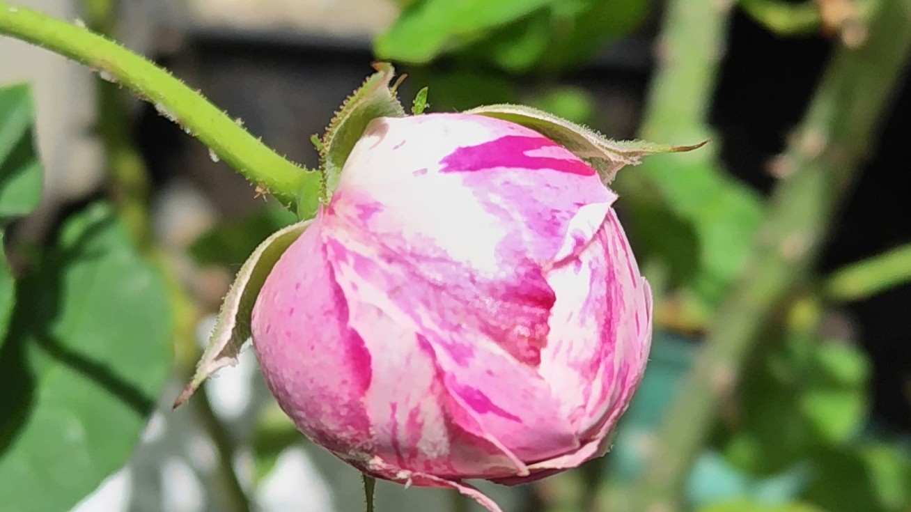 < バリエガータディボローニャ >絞りや複色の薔薇達が次々と昇天してしまいフラッシュの薔薇として 昨年大苗でお迎えしたバリエガータ春先は うどん粉まみれになったどうしようかと思いました今は 葉っぱ綺麗になりました白地にピンクでとても爽やか これは夏のお庭にピッタリな感じ夏に咲くかは分かりませんが❣ ❣ ❣2025/05/07バリエガータの蕾ピンクのフラッシュが見えます❣ ❣ ❣2025/05/08開ききらずパンパンに膨らんじゃってます❣ ❣ ❣2025/05/09小輪種くらいの大きさかな…と思っていましたがもう少し大きくなりました今日は ちゃんと咲いてくれていました今のところ二輪咲いてます↓↓↓❣ ❣ ❣蕾から開花まで早かったです でも お花二つはちょっと 寂しいもう少し ポテンシャルの高い薔薇だと思う❣ ❣ ❣Variegata di BolognaB一季咲きダマスク系の香り1909年イタリア Gaetano Bonfiglioli & figlio.Lodi.❣ ❣ ❣バリエガータ・ディ・ボローニャ(大苗)7号鉢植え オールドローズ(アンティークローズ) バラ苗