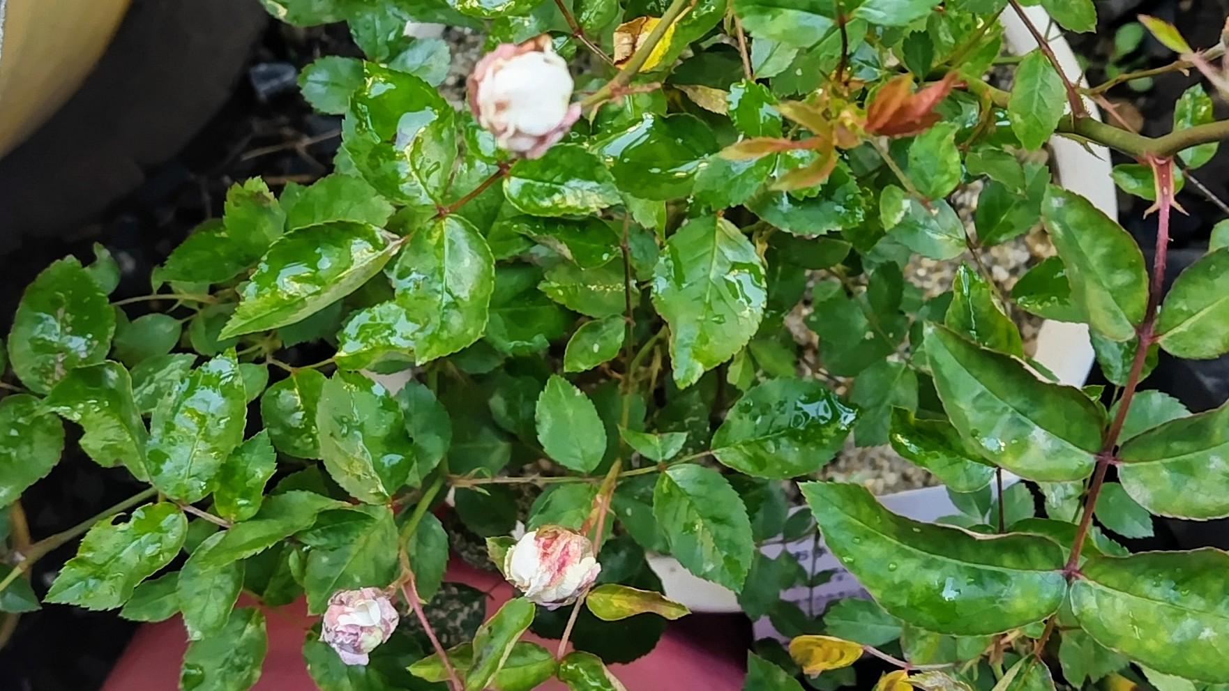 5/10〜12元気な薔薇が望ましいけどどういうワケだか弱々〜っとなってしまう株があります年々弱るコもいれば復活するコも育て方というより 環境が合わない…と感じるようになりました置き場所(庭) 土 水 肥料…同じです虫以外に違うものが無い現在 置き場所として東 TとER北 ERと太陽嫌いなモダンローズ西 花が終わったOLD南(軒下) 紫 白 黄色系の薔薇南(日影無し) つる薔薇これまで ちょっとヒンヤリする北側に薔薇を置くなんてなかった全員 南の庭弱ったコだけ南東ホント ここ数年で環境が変わったと感じる❣ ❣ ❣2025/05/10< ホワイトデュセスドブラバン >毎年 たくさんの花を付けてくれるオールド昨年は 調子が悪かったので地植えしていた冬に鉢に戻す株は 復活した感じ葉っぱの調子も悪くない↓↓↓…が 花付きは悪いあんまり咲かなかった< 粉粧楼 >小さい花がたくさん咲いてくれたボーリングするものもあったけど株がいまひとつな感じセール品だったのですやっぱり安い苗は当たり外れが大きい四季咲きバラ苗 【フンショウロウ (粉粧楼)】 1年生 新苗❣ ❣ ❣2025/05/12< ミルフィオーリ >毎年 たくさん蕾が付く薔薇…蕾は 多いのですが 枝がヒヨヒヨ〜どうした?株も どことなく変な感じに❣ ❣ ❣ 2025/05/12< ピエールドゥロンサール >みんな大好きピエールさん昨年 株の調子が悪く 鉢を小さくした株が可哀想なくらい小さくなってしまった今年は 花が4〜5輪咲いたシュートも出たし 鉢増ししようこの薔薇 本当は地植え向きなんですよねピエール・ドゥ・ロンサール(新苗)7号鉢植え つるバラ バラ苗 殿堂入り < ラピスラズリ >ロサオリの紫の薔薇最近はプログレッシオとかもっと育てやすい紫の薔薇はたくさん出ているけど紫で この花形 この香り唯一無二な気がする後ろと下の薔薇はパウルクレーラピスラズリの花径がこんなに小さく…買いなおさないとダメかな…毎年弱っていく気がしますスミレとブルーのスッキリした香り実に好み❣ ❣ ❣ 2025/05/16 < シャルルドミル >オールドにしては遅咲き品種昨年 株の調子が悪かったけど今年は 復活!!葉っぱモリモリ シュートも出た光で明るくなってしまったけどもっと紫で花弁の多いコツルはしなやかでも 花数は7〜8個で少なかったかな生育は順調バラ苗【新苗】シャルルドミル 国産苗《J-OC20》