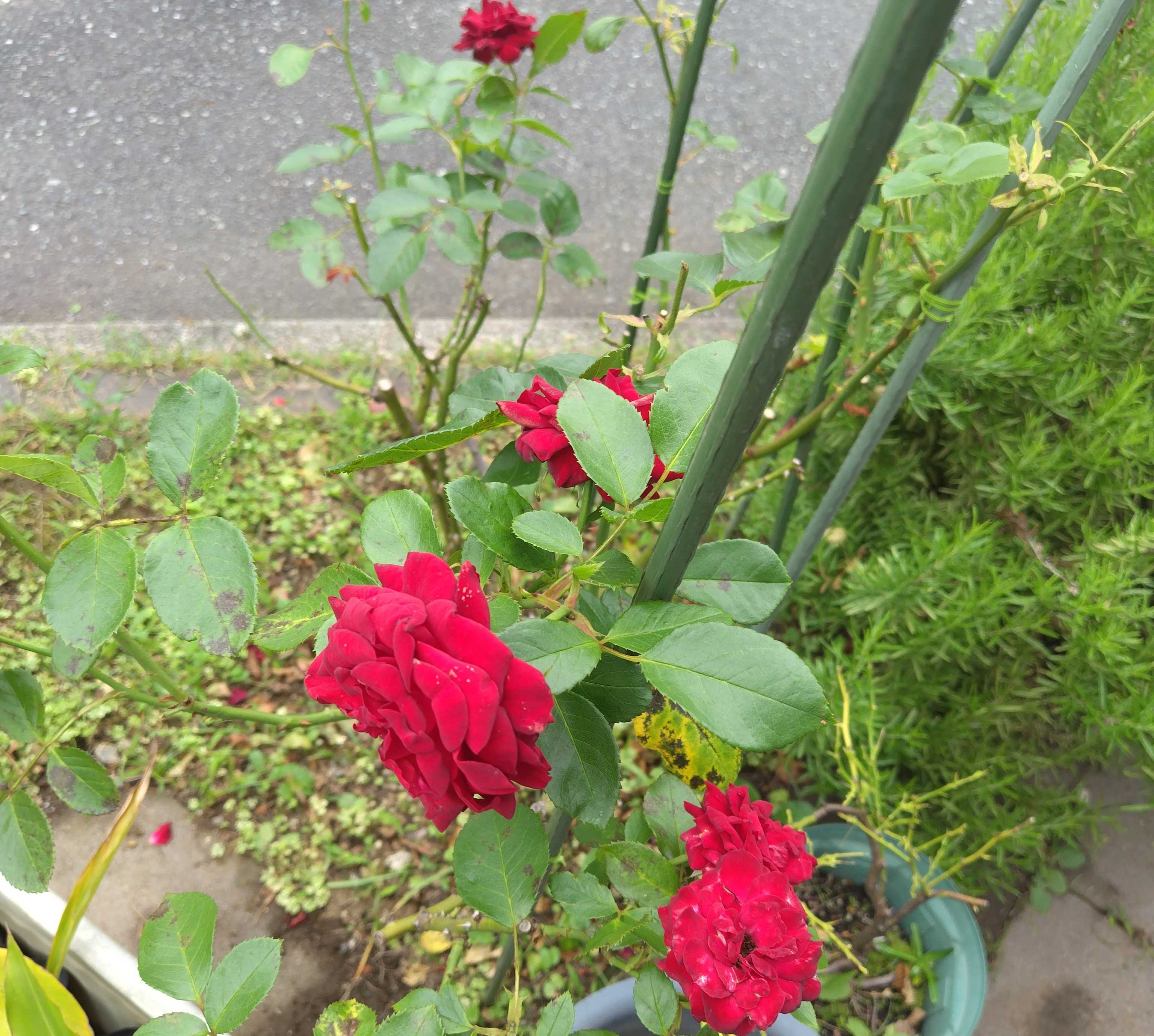2025/06/09< ニコロパガニーニ >たくさん咲いてくれる優秀な赤薔薇そろそろ花数が少なくなってきました一番花は終わりかな…蒸し暑くて 葉が落ちてしまいましたシュートの兆し↓↓↓毎年 必ずシュートが出ます軽く剪定しますシュートが出てくると込み合ってしまいますので切った枝から挿し木に出来そうなものを選抜挿し木してみます↓↓↓