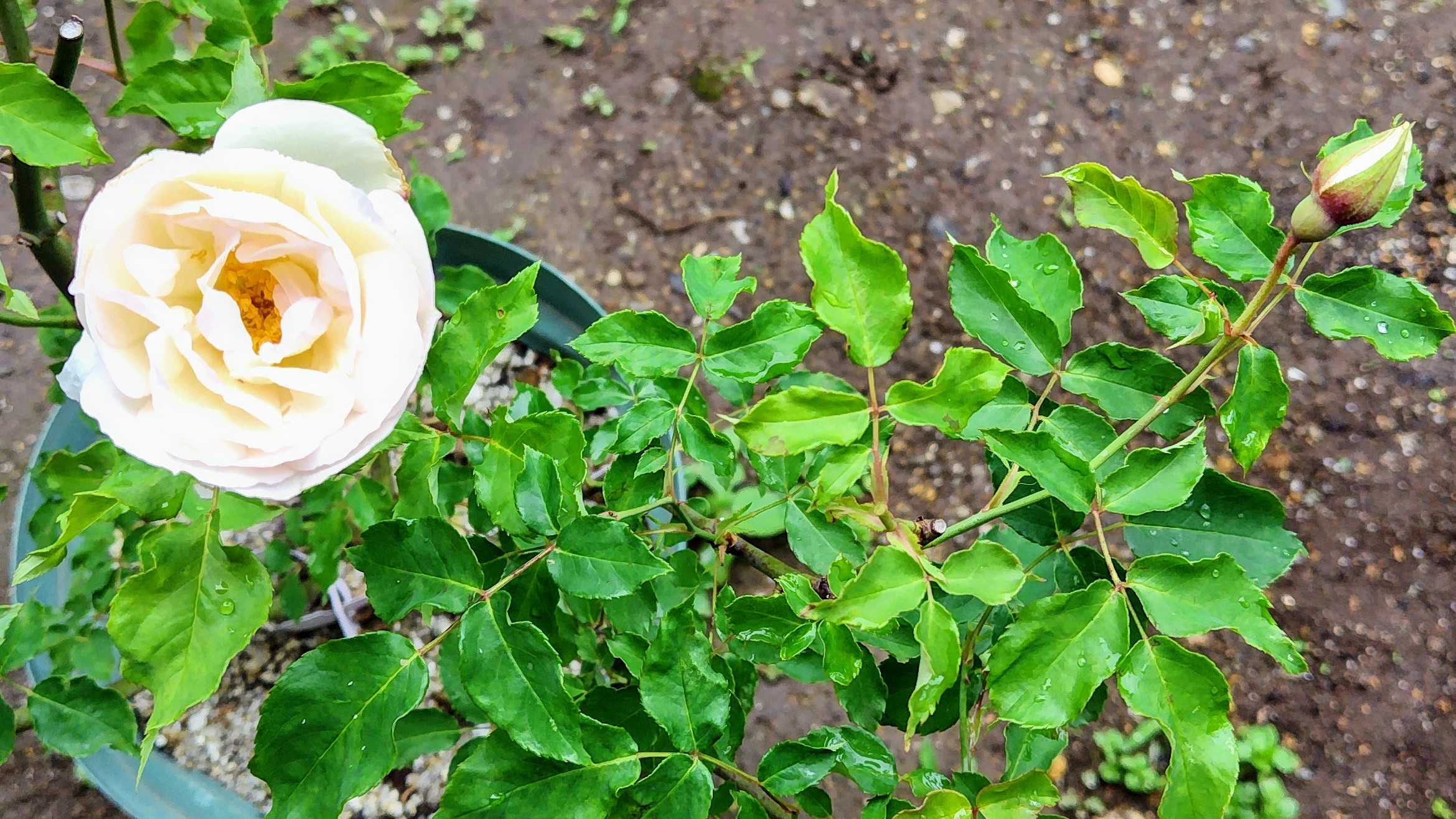 挿し木苗達の様子今年の休眠挿しは 成功し過ぎた綠枝挿しは 厳選しなくちゃ❣ ❣ ❣< クラウンプリンセスマルガリータ >2025/05/12昨夜は夜から雨だったガク割れしてたので玄関に移動たくさん付いた蕾を風雨に晒したくなかった朝 そのまま玄関に残して出掛けた帰宅後…!!!マルガリータ様の枝が 一本廊下に落ちてる…一番カッコよく長く伸びていたシュート…根本からバッキリ…(泣)犯人は テーブルの下で猛省中↓↓↓このままでは可哀想なので挿し穂にします剪定の枝じゃないからめちゃめちゃ良い挿し穂根が出ますように…【大苗】バラ苗 クラウンプリンセスマルガリータ 輸入苗 7号鉢植え品[農林水産省 登録品種]《ER-Y》❣ ❣ ❣< デスデモーナ >2025/05/15休眠挿ししたデスデモーナに蕾が付いた今朝 咲いてました1月下旬くらいに挿し木にしたので約4ヶ月本当は咲かせない方が良いのでしょうけどこんなに小さくてもデスデモーナの香り色や花形もちゃんとデスデモーナ横顔親木の調子がここ数年悪いのでこのコが育ってくれるといいなバラ苗 【デスデモーナ】 (大苗) シュラブ 半つる性 返り咲き 中輪 白系 イングリッシュローズ ER6L専用角鉢 強香