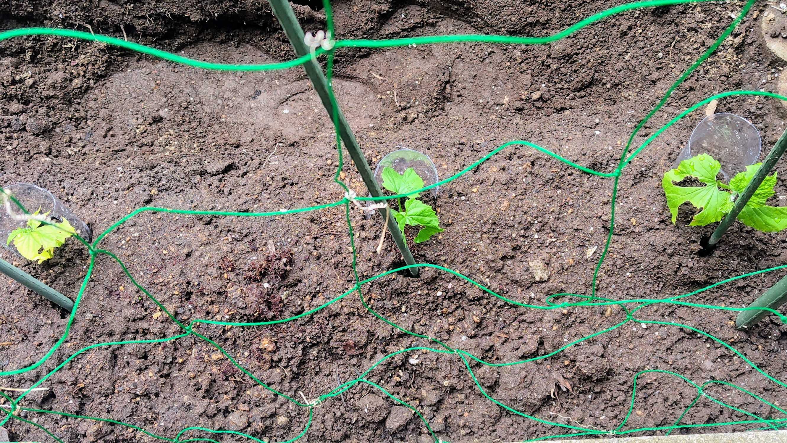 本日 鉢上げしたゴーヤを一坪畑に植えました