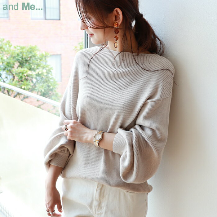 【G-11】【宅配便A】【送料無料】リブ ボートネック ボリューム袖 ニット トップス レディース フェミニン 長袖 バルーン袖 M/Lサイズ 春 秋 冬【メール便NG】
