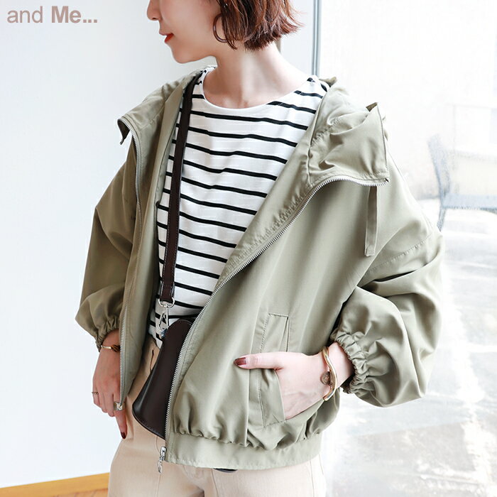 【X-4】【宅配便A】フード付き ボリューム袖 ジップ ブルゾン レディース アウター ジャケット ドルマン サイドポケット 春 秋【メール便NG】