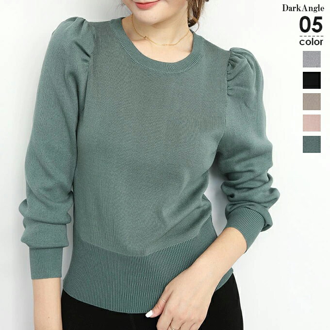 ニット トップス レディース tops 長袖 クルーネック パフスリーブ ボリューム袖 バルーン袖 セーター プルオーバー ニットソー きれいめ オフィス 無地 黒 白 ホワイト ピンク 春 【 パフスリーブニットトップス 】
