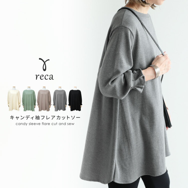【大人気インフルエンサーAYAさんコラボ!】キャンディ袖フレアカットソー(R21110-k) レディース プルオーバー チュニック ボリューム袖 体型カバー トップス reca レカ メール便対応10 ROOMコラボ