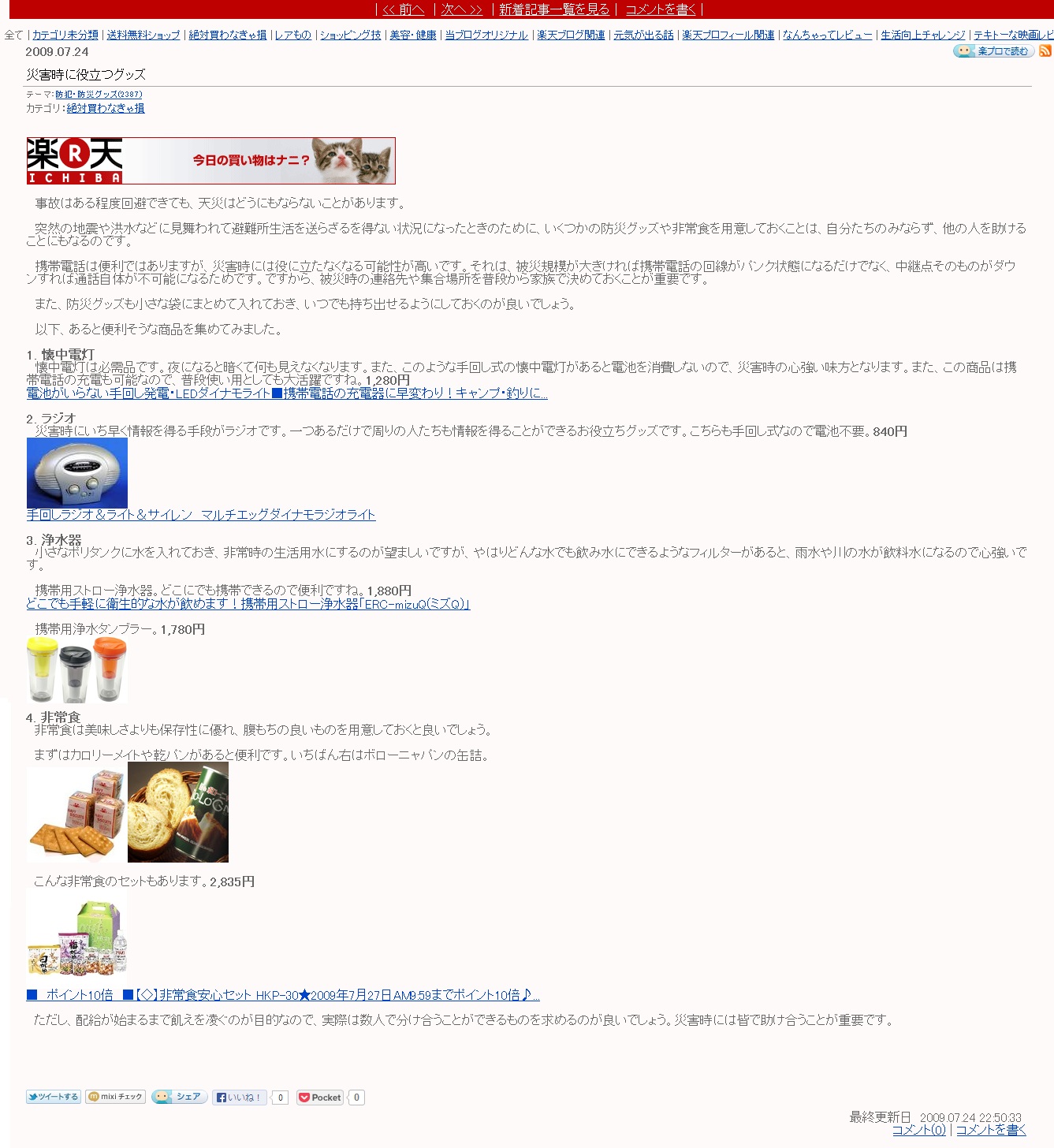 恐らく、楽天にとっては、ショッピングに関する話題や商品の話題を扱ったブログの方が好都合といえるのかもしれませんが、それでは楽天ブログ=ショッパー専門ブログになってしまい、商品販売目的のブログ記事でブログスペースが増え、純粋に情報を求めている訪問者たちが欲しい情報になかなかたどり着けない可能性が高くなる恐れもあります。