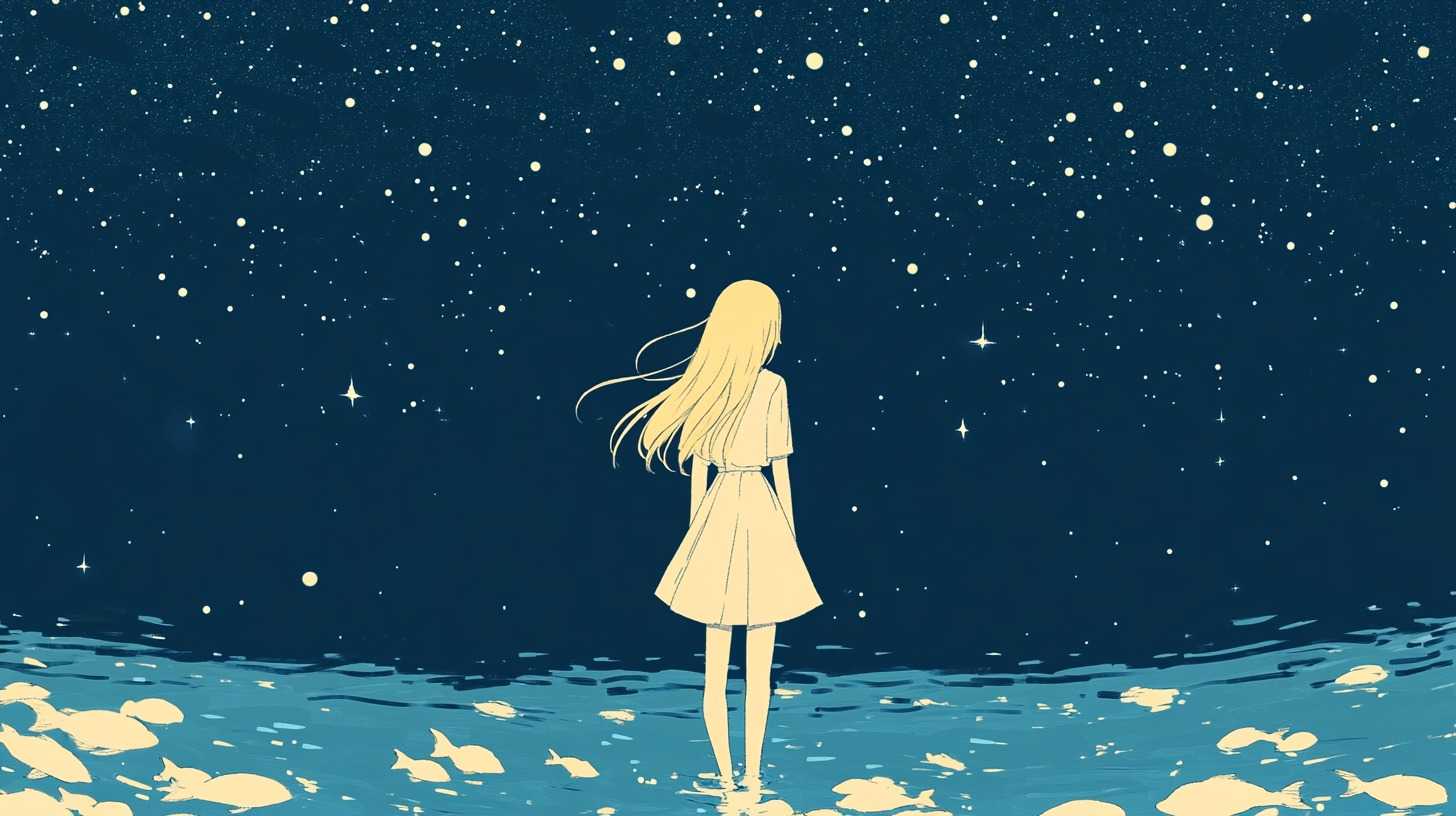 名画座で、椅子のスプリングが軋む音とともに終わった。黒澤明の『生きる』だったか、それともタルコフスキーの『ストーカー』だったか。記憶は既に曖昧で、ただスクリーンに映し出された最後のクレジットが、蛍光灯の白い光に溶けていく様だけが、網膜に焼き付いて―――いた。灰色を感じる映画のエンドロールの後、不意に電灯を消した部屋で僕は思った、壁のスイッチをパチンと下げる音が、静寂の中で妙に大きく響く。冷蔵庫のコンプレッサーが低い唸りを上げ、隣室からはテレビの音声が漏れてくる。ニュース番組らしい、アナウンサーの抑揚のない声が壁を透過して届く。こんな場所で薄目を開けながら、思った。翡翠が砕けたらここは美しくなるだろうか、と。畳の目に沿って緑色の粉末が散布され、蛍光灯の光を受けて燐光を放つだろうか。壁紙の染み、天井の亀裂、そういった貧しさの痕跡が、宝石の残骸によって覆い隠されるだろうか。波打ち際から、ざざ、と、鳴る波と、月明かりに照らされた、センティメントな砂浜。記憶の中の、あるいは想像上の、波打ち際。規則的に、しかし決して機械的ではない有機的なリズムで、鳴る波の音。一つの波が砂浜に到達するまでの時間は約七秒から十四秒、上の空で何度もはずみをつけて循環する、深呼吸。この世のすべてとは、このずっと奥、ずっと向こうの、闇が、連綿と、繋がっているということ。宇宙の大部分は闇で満たされ、ダークマターとダークエネルギーを合わせれば、宇宙の約95パーセントは未知の暗黒物質で構成されている。群青が眦を掠めて、ミッドナイトブルーが金魚鉢の中を泳いで、眼の裏の淵へ迷い込む。角膜、前房、水晶体、硝子体、そして網膜。ミッドナイトブルーは視神経を通り、後頭葉の第一次視覚野に到達し、さらに奥へ、記憶と感情を司る辺縁系へと迷い込んでいく。ドーパミン、セロトニン、ノルアドレナリン。シナプス間隙でのイオンチャネルの開閉、受容体への結合、再取り込み機構の抑制。すぐに慢性化中毒を作り出し、安定化は半永久化される。遺伝子から這い出した文化が、運命の怯えの上に構築され、世界はこまやかな皺をよせ、月夜の海をこぼれたミルクのように見せている。ミーム理論で言えば、文化は情報の遺伝子のように振る舞う。でも性的な不能に近い、全体的にダルダルな、一日。ハイデガーは「存在と時間」の中で、人間は「死への存在」であると述べた。死の必然性、そして死の時期の不確定性。この二つの事実が、人間に根源的な不安をもたらす。その不安の上に、文化という巨大な構造物が建設される。宗教は死後の世界を約束し、芸術は不死の幻想を提供し、科学は予測可能性という安心を与える。そして僕はどうだ、何様か? 筋緊張の低下、副交感神経の過剰優位、セロトニンとノルアドレナリンの不均衡。狭い空間の中で寂寥と追憶と破壊と創造に満ちた無秩序が、盲滅法に走り回っている、青の概念。地球儀の上や、グーグルマップや、どんな歴史の教科書とも違う、心の底から、耳や鼻や眼のくぼみの中で発酵した、それが、夢想ではないと、誰かが言い聞かせていた。静かだった。GPS衛星からの信号、三角測量、リアルタイムの位置情報。ストリートビューで見る街並みは確かに「現実」を映しているが、それは二次元の画像データ。それを三半規管の平衡感覚が、蝸牛の音響信号の変換が―――。年表、王朝の興亡、戦争と条約、産業革命と市民革命。しかしそれらは「大文字の歴史」であって、個人の経験ではない。それを嗅上皮の嗅細胞、約400種類の嗅覚受容体、分子構造の認識が―――。「これは現実だ」「いや、幻想だ」「いや、現実と幻想の境界は曖昧だ」——そういった声が頭の中で交錯する。君は優しくて傷つきやすいから、下唇を噛むこともあるだろう、家族の一員のように住居に入り込んだり、友達のなれ合いという名のもたれあいもできずに、君は今日も虚しさと向かい合う。でもそんな暖かさや優しさを持ちながら、君は大人になっていくんだろう。慢性的な孤独は、喫煙や肥満と同程度の健康リスクを持つけど、社会は時に、冷酷さや強靭さを要求する。労働市場での競争、経済的自立の圧力、社会規範への適応。わかったようなことを言われて肯くなよ、人生は長い、誰が本当に正しい人生の理解を示していたのか、もう一度ゆっくりと見抜いてみるといいのさ、傷ついてなお嫌がる眠りにしがみつき、もがきながらの格闘を繰り返す。誰も信じられないという人は見たことがないな、何か自分だけの答えを誰かから学んで生きていく。ボタンを一つかけ忘れたまま、波打ち際を歩いて行ける大人になれよ。ヴィクトール・フランクルが「夜と霧」で述べた、人間は意味を求める存在だ。意味が見出せない時、虚しさが訪れる。でもそれすらも感じない完璧な人間だったら、そもそも生きる意味がないことなんて、一秒でも見抜けそうだって思えて
