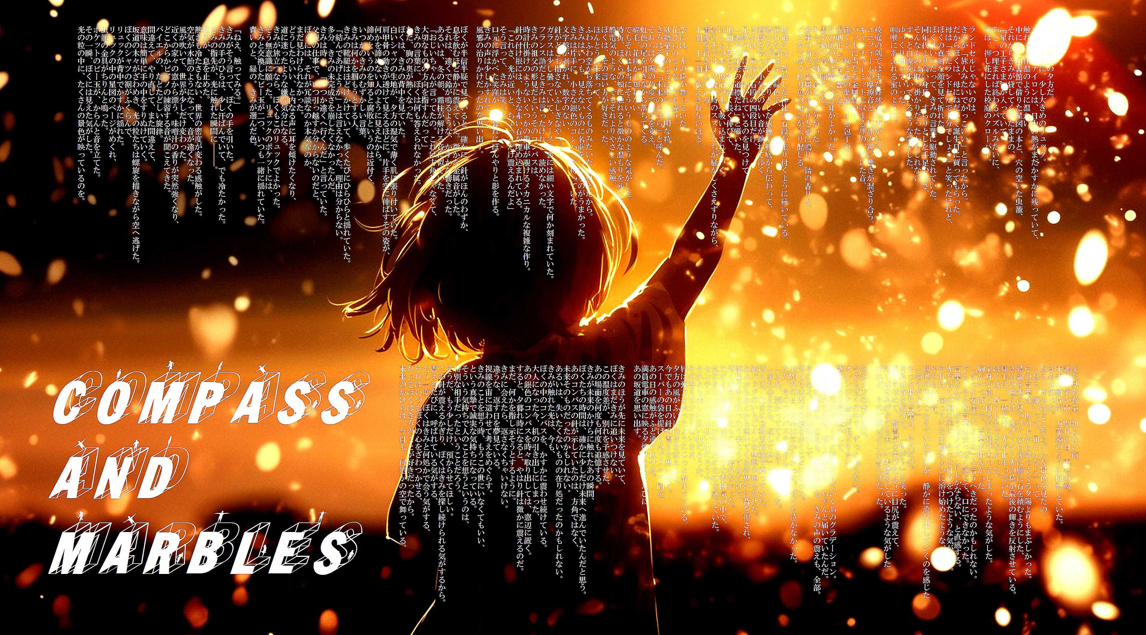 Compass and marbles小学五年生の夕方だ。白いシャツに、少し大きめのリュック。リュックのナイロンは、日中の熱がまだかすかに残っていて、触れると体温のように温かい。中には、図書館で借りた星図の本と、穴の空いた虫籠、それからきみが貸してくれたままの、『星の王子さま』が入っていて、あと一つ埋まれば終わるパズルみたいに、栞は、押し花にした校庭のクローバー。ランドセルじゃないのは、きみが「旅人みたいでかっこいい」と言ったから。だからぼくは、母にねだって誕生日に買ってもらった。母は「まだランドセルで十分でしょう」と笑ったけれど、ぼくの真剣な顔を見て折れた。ぼくはいつだって、きみの言葉に駆動されていた。同年代より高い身長、すらりとした手足の長さ、そんなものは取っ掛かりだったかもしれない。ずっと白線を歩いているような気がした。ゆっくり知っていった、咽喉にあふれる蜜のように。校庭の隅ではまだ野球部の声がして、ユニフォームの摩擦音と、打球の鋭い響きが混ざり合う。キャッチャーミットに収まる球の、乾いた音。バットに当たる金属質の音。遠くで、晩ご飯の準備をする包丁の、規則正しい音が響いた。あの頃の僕は驚くほど耳がよかった。雲が動く音が聞こえた。キャベツを刻む音だ、と分かった。鉄棒の冷たい金属がゆらりと風に鳴り、錆の香りと、どこかで焼く秋刀魚の匂いが入り混じる。坂道には、苔むした神社の石段が張り付くように続いている。濡れた苔は深い緑色で、踏むたびにしっとりとした感触が靴底から伝わって、階段を伝って小気味のいい音が跳ねてゆく。きみは、最後の石段の四段目だけ、足跡の形に苔が剥がれているのを見つけて、「誰かの秘密の道標だね」と囁いた。地面に落ちた影は細く長く伸びて、ぼくらの歩く坂道の先へ吸い込まれていく。影の先では、夕暮れ時のスズメたちが騒がしくさえずりながら、電線を行き来している。十羽、十一羽、数えきれないほど。空には、光の粒が舞っていた。花びらのような、でも違う。砂糖菓子のように儚い、透明な粒。きみはそれを「未来のかけら」と呼んだ。それらは夕陽の角度で輝きを変え、虹色の尾を引きながら落ちてくる。綿毛、花粉かも知れない。でもそれは本当にそういうもののような気がした。時折、ぼくらの頬に触れると微かな温もりを残した。静電気のような、でもそれよりやさしい感触。ぼくは、その言い方が好きだった。ほんとうに未来って、ふわふわ空から落ちてくるものみたいだと思えたから。きみはいつも、見えないものに名前をつけるのがうまかった。きみは片手に、小さな銀色のコンパスを持っていた。文字盤が剥がれ、数字のない、針がどこも指さないふしぎなやつ。ガラスは少し曇っていて、ケースの裏には細い文字で何か刻まれていた。フランス語だときみは言ったけれど、読めなかった。きみの祖父の形見だというそのコンパスは、時計仕掛けのようないくつかの歯車が覗けるメカニカルな複雑な作り。針の付け根には、小さな赤い石が埋め込まれている。「これさ、光が近いと、ちょっとだけ震えるんだよ」そう言って、きみは笑った。口元に浮かべた笑窪が、夕暮れにぼんやりと影を作る。きみの声は少しかすれていて、風邪の治りかけだったのを思い出す。ぼくが半信半疑で見ていると、確かに、針がほんのわずか、息を飲むほど静かに震えていた。微かな金属音がした。それは、遠くで鈴が鳴るような、かすかな響きだった。あるいは、冬の朝、霜柱が解ける音に似ていた。「おじいちゃんが言ってたの。これは方角じゃなくて、大切なものの方向を指すんだって」きみの言葉に、ぼくは何も答えられなかった。ただ、胸の奥が熱くなった。ぼくは、きみの背中を見ていた。白いシャツの生地が、夕方の湿気で薄く肌に張り付いていた。肩甲骨の動きが透けて見えるほどに。片手を空に伸ばすその姿が、何かを諦めない人のように見えたから。諦めというのを知ると腐敗というのは近付く。いつかのきみのむずかしい言葉。きみは何かを掴もうとする人。きみの靴紐はほどけかけていて、歩くたびにひらひらと揺れていた。「結んであげようか」とは言えなかった。理由は分からない。多分、きみの未完成さを崩したくなかったんだ。きみは時々、「いつか遠くへ行くんだ」と言っていた。父親の仕事で、いつ引っ越すか分からないのだと。ぼくには、それが冗談なのか本気なのか、まだ見わけられなかった。どうしたらいい、と内なる声に耳を傾けたくなり、道に迷ったような嫌な気分になる。きみが旅立つなら、ぼくもこのリュックでよかった。そう無意識に願った。リュックのポケットには、きみと交換したビー玉が二つ、いつも一緒に揺れていた。青いのと、緑の。きみが選んだ色。「ねえ、触ってみる?」きみがそう言って、ぼくの手を引いた。きみの手のひらは、少し汗ばんでいて、でも冷たかった。きみの指先が、光に触れ