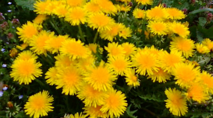 田んぼのあぜ道では、タンポポが満開でした。