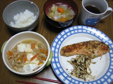 今晩のメニューは鮭のパン粉焼き(ムニエルと呼ぶ?!)切り干し大根の卵とじ根菜いっぱいポトフごはん梨でーす切り干し大根は、昨日の残りを、たまごでとじました実家では、定番だったんですが、旦那さんは初めてだったようで、びっくりしてました!