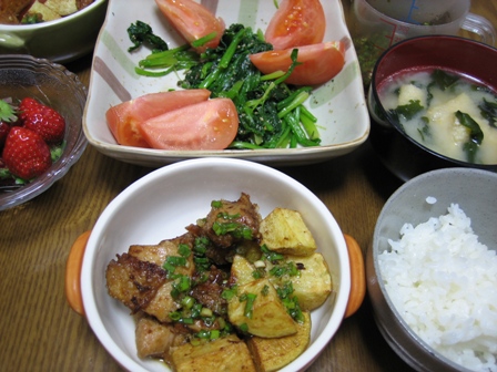 今日は、7ヶ月最終週の検診がありましたうちの坊ちゃまは、今日もおなかの中で元気に生きてました逆子でもなく、順調でした!よかったよかったただいま、1249gだそうです♪初診のときは2ミリだったことを考えると、おおきくなったなー母さんうれしいぞっ!今日の晩御飯は。鶏肉と春掘バレイショのねぎポン酢がけほうれん草のおひたし&トマトお味噌汁ごはんいちごでーす☆鶏肉…ポン酢がけは、ごはんにもお酒にも合う感じでおいしかったおすすめでーす☆