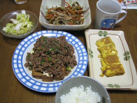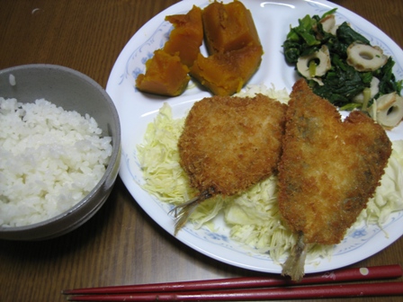 今日、小倉駅から、おみやげが届きました☆ありがとう!小倉駅のお姉さん!今日の晩御飯はサクサク厚揚げのそぼろがけきんぴらごぼう卵焼き白菜の浅漬けごはんめんたいこでーす★さくさく・・・は、今日の上沼恵美子のおしゃべりクッキングで紹介されてて、作ってみました!鶏ミンチがなかったので、合い挽きで☆おいしかったです!