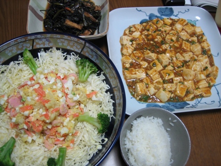 今日の主役は、麻婆豆腐!マーボーのもとを買って来て作ったけど、なんか、しっくり来なかったお母さんの手作りのマーボーがやっぱり一番だなー
