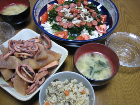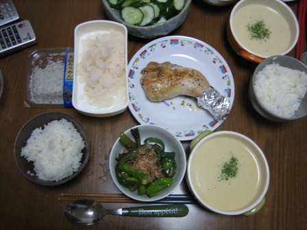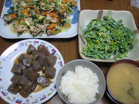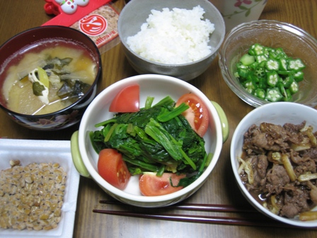 今日は、お昼はずっと野球観戦してました!勝ってよかった!よくがんばった、ジャパン!そして夜は、旦那さんが飲み会だったので、一人でごはん!作ったのは、牛肉の時雨煮?のみ。。。一人やと手抜きになりますよねー^^;オクラとほうれん草は冷凍。。。味噌汁は残り物でも、おいしかった!満足でーす^^v