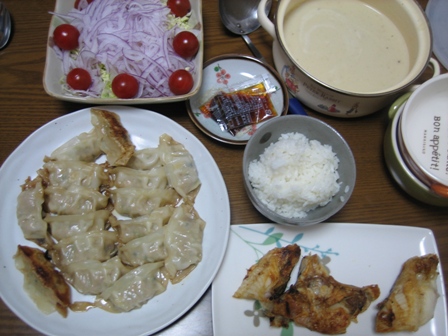 今日は朝から、なんか体がだるくて重くて、だらだら過ごしましたー。。。妊婦だからなのか。。。そして晩御飯は簡単に野菜いため(味付けは焼肉のたれで^^;)焼き小龍包味噌汁ごはんでしたー。焼き小龍包は、友達の結婚祝いのお返しでもらった、選べるギフトで選んだものです^^;もちもちでおいしかった!でも、かむと肉汁がびゅーってでて、二人で飛ばしまくって、かなり机を汚しながら食べました^^;