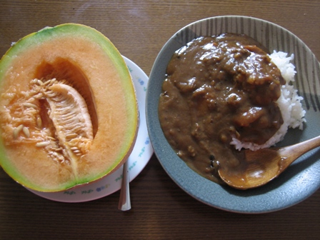 この夕張メロン半切れ、一人で食べちゃった☆ぜいたくだわーーーくれたお母さんお父さんありがとう!