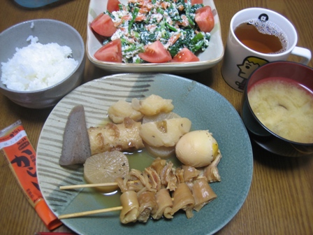 今日は、月1回行ってるエステの日でした来月からは、産休とりました^^;ので、いつもより気持ちよく感じたー☆メナードのエステお勧めです今日の晩御飯は昨日の残りのおでんです!それと、ほうれん草の白和え、ごはん、お味噌汁、でした!ほうれん草は、よく食べるけど、いつもゴマ和えにしちゃうので、今日は白和え!たまには違うのもいいね!あっ!今日楽天でおむつカバー安価で落札できたこれ2つセットで700円くらいでゲットできた^^vいえーい!!