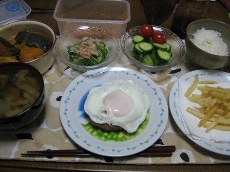 今日は、テレビでガストのメニュー食べつくし!みたいなのがやってて、家でガスト気分味わってみました残りものもあいまって、なんだか豪華旦那さん、外食だったので、ひとりでぺろり半熟卵がとろーーーーーりっハンバーグは、冷凍だったけど満足でした♪