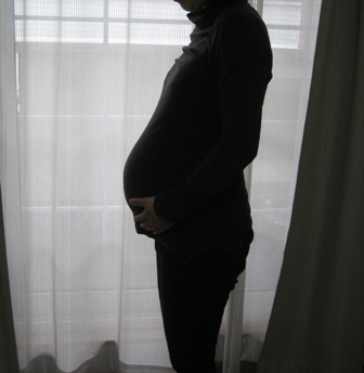 33週に入って、お腹がまた一段と大きくなったかんじ!なので、写真撮ってみた!男の子は、前にぼーーーんってせり出す感じ!