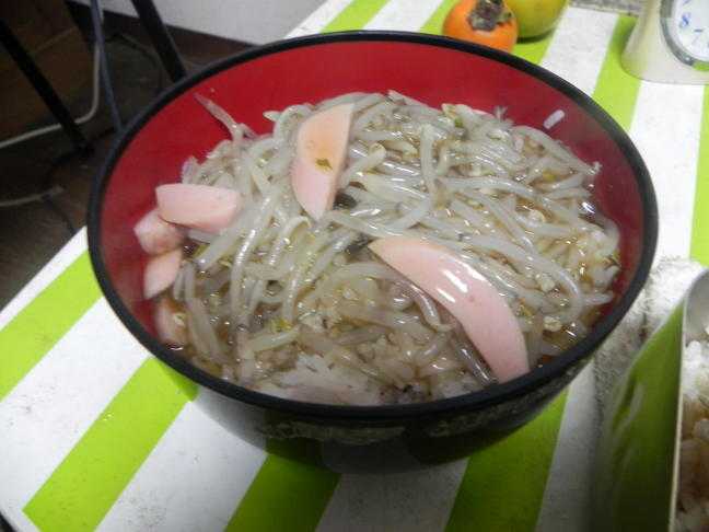 ポークウインナーとモヤシ炒め弁当さて、私が40代になった21世紀幕開けの正社員時代セットした人のミスが原因だと反論したんですが・・・・やる前にミスが無いか想定しろなどとミスを棚に上げて滅茶苦茶な論理を跡取り息子が宣いました