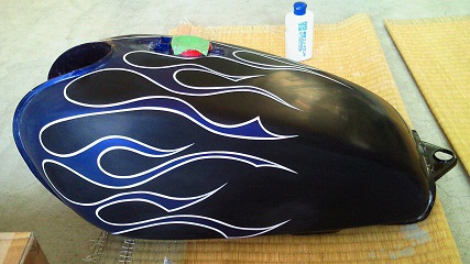 ようやっとSR400のタンクが完成しましたよーー!!!!まずゆず肌のクリアーの表面を平ら…