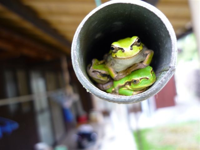 うちの物干し竿のキャップが壊れてなくなって数年ですがかえる君がいるのは気がついていましたが写真を撮ったのは今年がはじめてこの日は三匹もいらっしゃいました一番上のかえるくん、微妙に愛嬌ありかも こちらは今日は肌寒い秋風が吹いておりました今年は秋が来るのか不安でしたがしっかりと季節は秋になりました。かえる君たちの冬眠も、もうすぐですね
